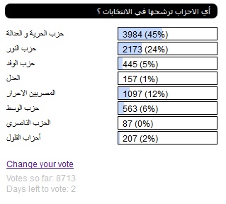 شاهد نتيجة ترشيحات زوار و أعضاء موقع ايجي مودرن للاحزاب المشاركة في انتخابات مجلس الشعب